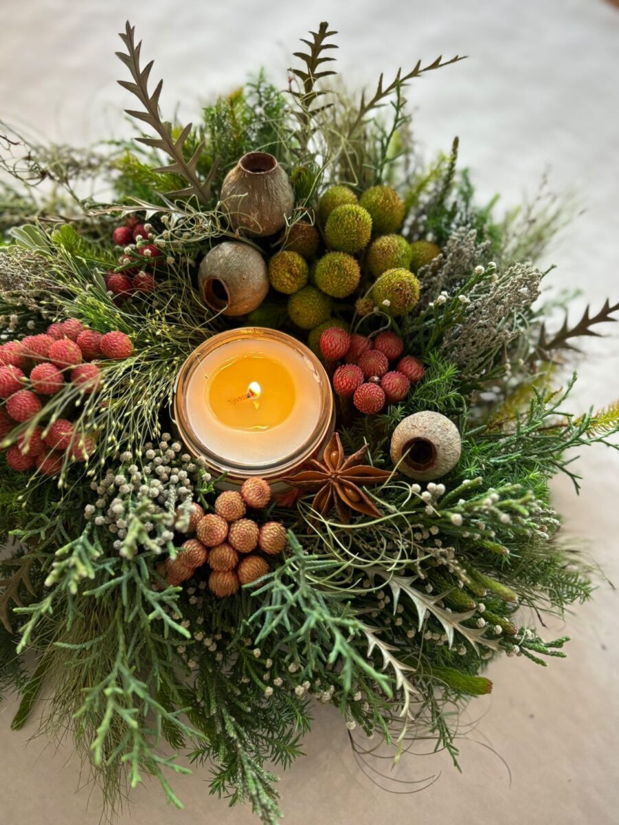 ②キャンドルテーブルクリスマスリース サイズ30センチ(所要時間90分程度)